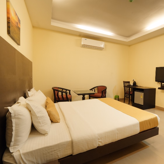 We offer very spacious rooms at Gentleman Mithila, with Suite Rooms measuring 320 sq. ft. and featuring a king-size bed, and Deluxe Rooms measuring 150 sq. ft. with twin-size beds. Each room is thoughtfully designed with a dedicated study area, making it ideal for both work-related and leisure stays. Guests can also enjoy a separate dining area, along with a mini bar and refrigerator, and attached bathrooms, ensuring comfort and convenience throughout their stay